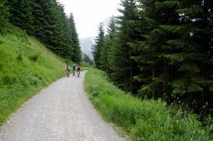 The sun was melting us down during the ascend of the nearby peak of the Kuhgehrenspitze. After enjoying the silence and the alpine panorama for a while, we were pretty excited about the following downhill in the shades of the Kanzelwand through gnarly singletrails and open cow alps.