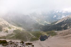 Die Wettervorhersage für diesen Tag ist nicht eindeutig und so schwingt bei den Wolken durch die wir steigen auch immer der Gedanke mit, ob wir nicht auch noch die Regenklamotten auftragen müssen. Daneben sorgen die Wolken, die den Blick sowohl zurück Richtung Soiernhaus als auch voraus zum Karwendel abwechselnd versperren und freigeben, für eine besondere, irgendwie einsame Stimmung am Berg.