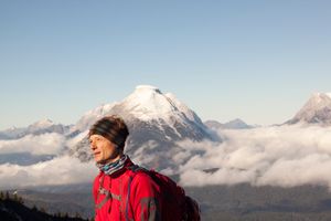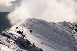 Wir machen uns zügig auf den Weg durch den Kessel. An Fahren war hier nicht zu denken und so schoben wir unsere Räder in erster Linie bis kurz unter den Übergang, wo wir dann nochmal kurz Pause machten. Hier galt es noch eine Stahlleiter mit den Bikes auf dem Rücken zu überwinden und dann den Gipfelaufbau in Angriff zu nehmen. Die Schneemenge hielt sich in sehr überschaubaren Grenzen und so war es vor allem ein Schmankler fürs Auge. Genau wie der Ausblick ins Karwendel vom Gipfelkreuz aus. Nach einigen Erinnerungsfotos machten wir uns auf die Abfahrt. Der erste Teil bis zur Nördlinger Hütte war noch sehr verblockt, aber was dann kommen sollte, werdet ihr nicht glauben…
