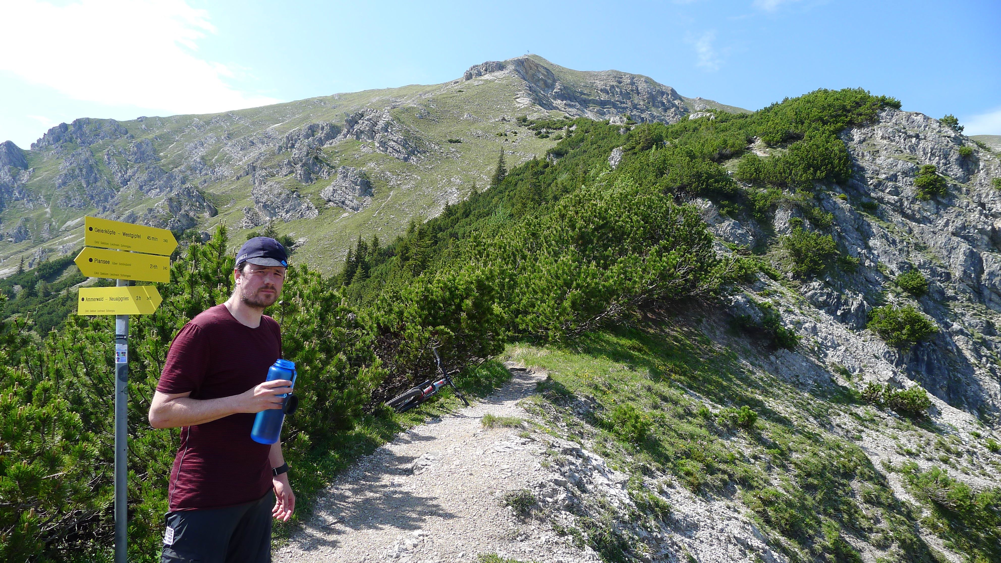 Woran ich mich aber noch genau erinnern kann, ist der Start der Tour an den Geierköpfen. Wir waren ziemlich motiviert und heiß, dass es endlich losgeht. Pedaliert wurde aber lediglich die ersten fünf Minuten und dann kam das Rad auf den Rücken. Ich ging die ganze Zeit davon aus, dass es ein Witz sei, als Andy meinte, dass wir nur fünf Minuten und entsprechend wenig Höhenmeter treten konnten. War es aber nicht. Ich dachte der Berg, an dem nur getragen wird, sei der Thaneller - und der war ja für einen anderen Tag gelpant.