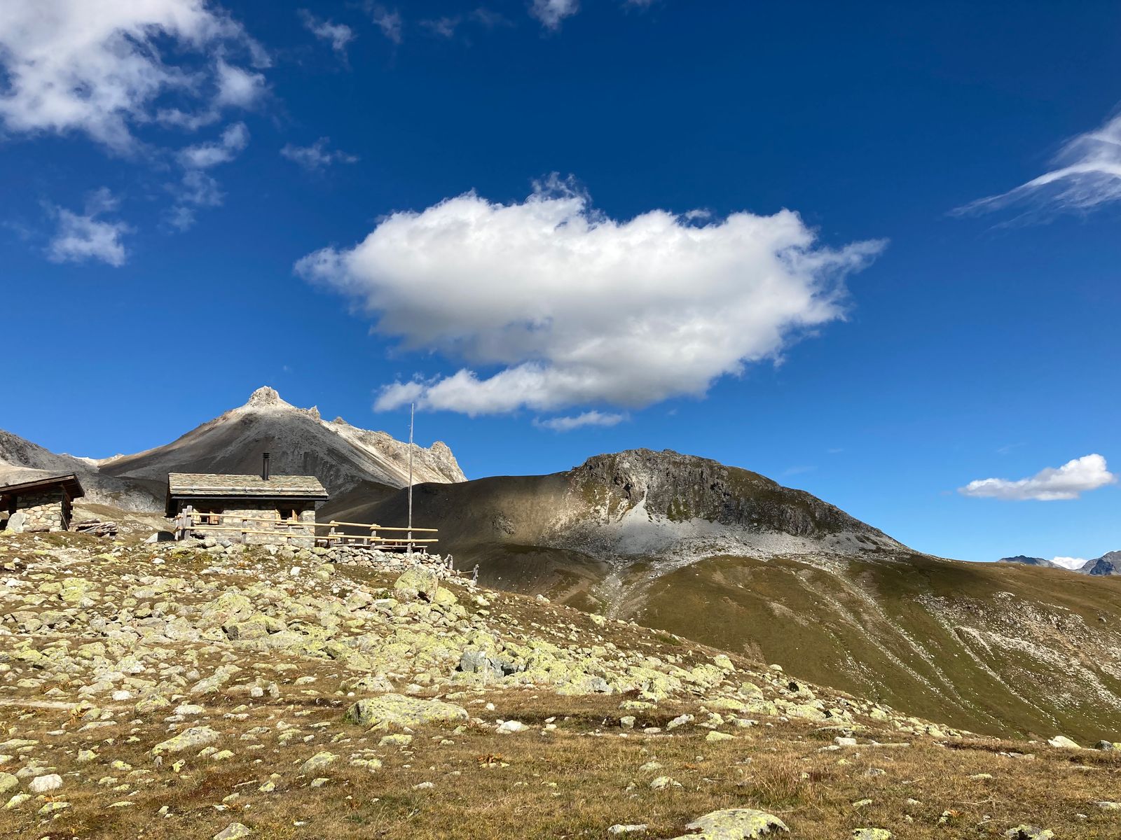 Wir werden wach an Tag 4 und es wartet ein üppiges Frühstück auf uns. Aber wir halten es kurz und machen uns zügig auf den Weg. Wir wollen nicht zu spät daheim bei den Familien sein. Wir haben uns spontan für einen Kringel im Val Minor entschieden, bei dem wir einen kurzen Abstecher nach Italien machen. Wir parken das Auto bei der Diavloezza Bergbahn, an der wir auch gestern schon vorbeikamen und starteten in einer mystischen Morgenstimmung, bei der Wolken und Sonne sich abwechseln.