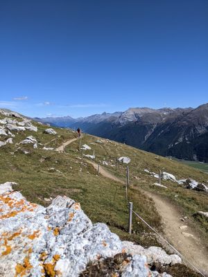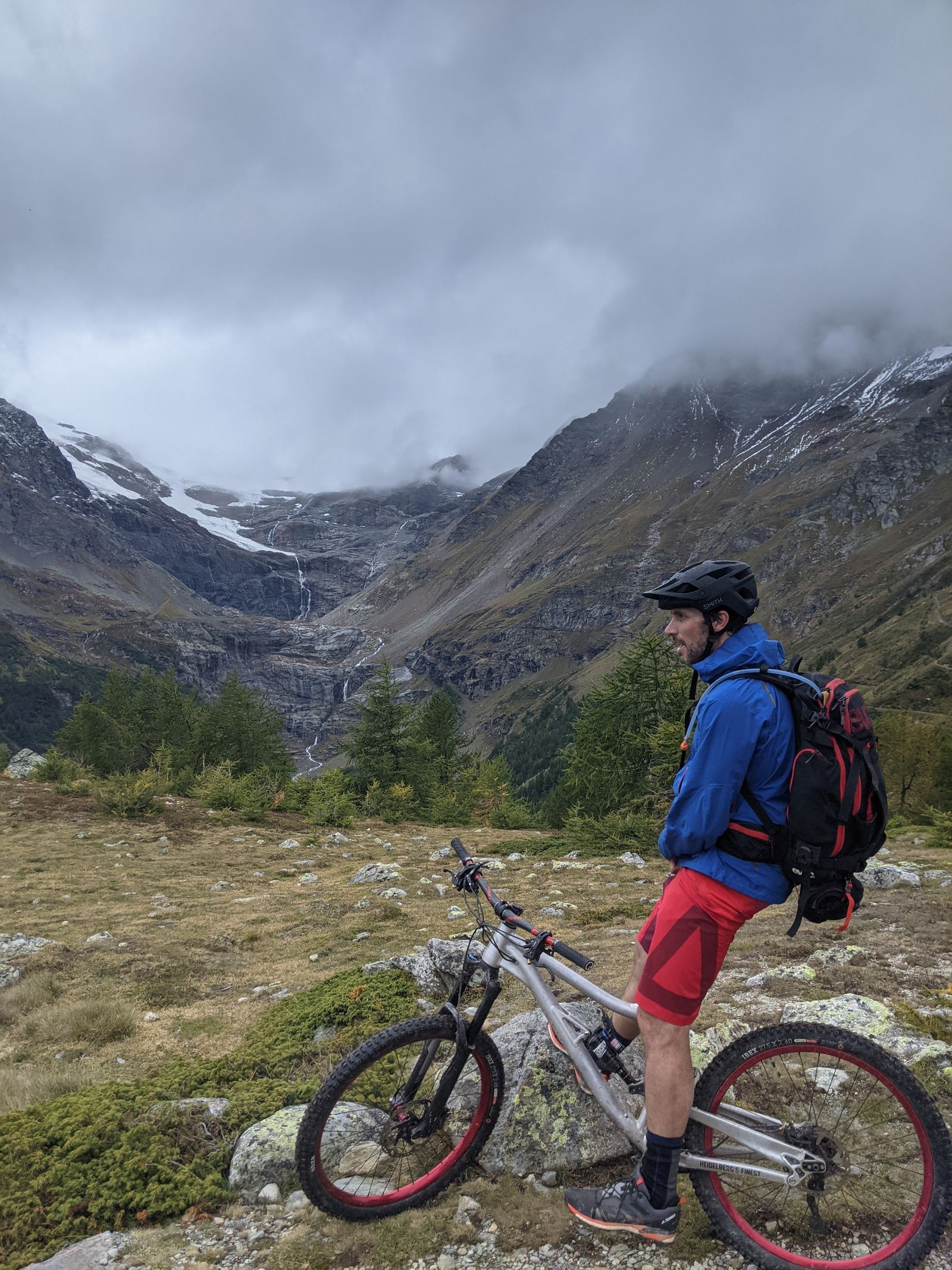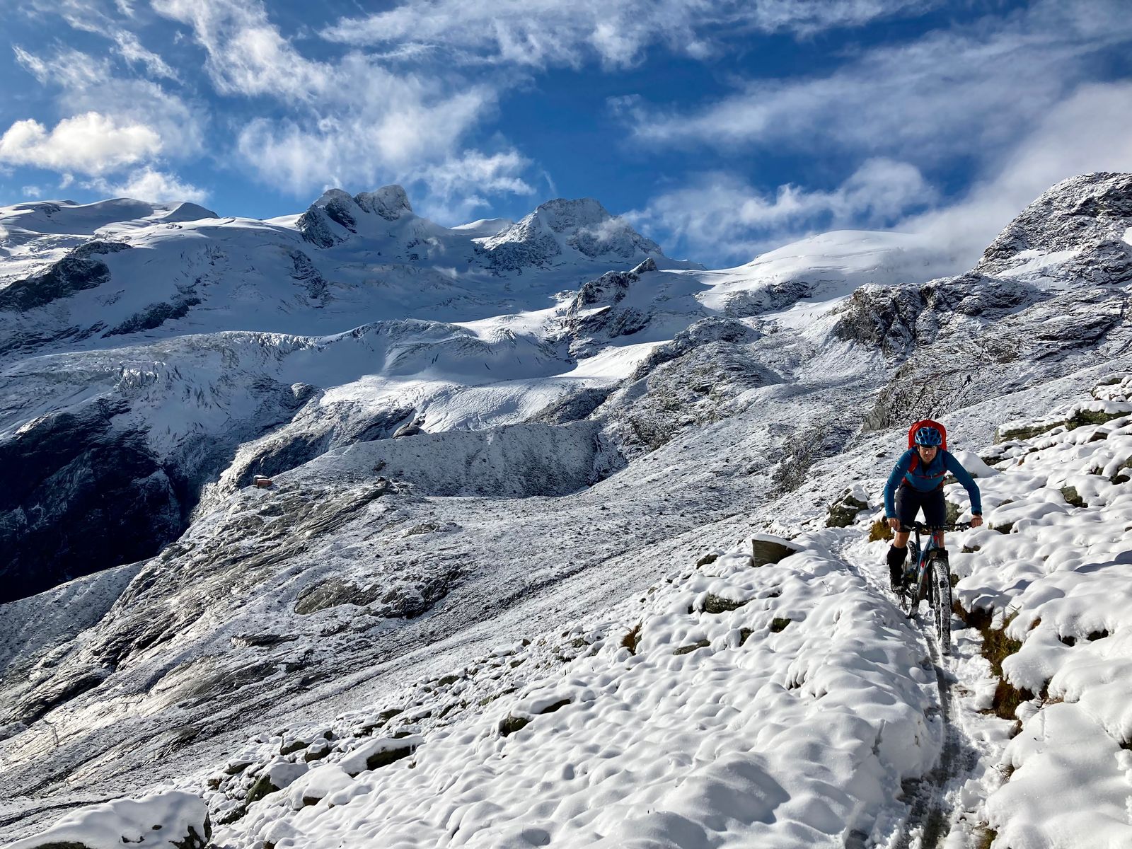 Wir sind ganz alleine und steigen gemütlich durchs Tal auf und können auch einen kurzen Blick erhaschen auf den Trail, auf dem wir eigentlich heute abfahren wollten, runter von Gregory. Egal. Das Talende ist bald erreicht und wir queren über eine ausgesetzte Passage die Bikes auf dem Rücken rüber nach Italien. Von hier aus beginnt die Abfahrt. Technisch, sonnig und hochalpin. Nice! Wir merken die letzten Tage im Körper, aber das ist heute schon auch nochmal ein Zuckerstück. Nach dem kurzen Abstecher vorbei am Rifugio Tridentina kehren wir zurück zum Auto. Die beste 600 Höhenmeter Tour ever. Heißt es. Kann man so stehen lassen. 4 Tage - die Schweiz hat wieder geliefert! Jetzt ab nach Hause und selbst die Heimreise mit dem Auto kann man dank der tollen Passstraßen genießen.
