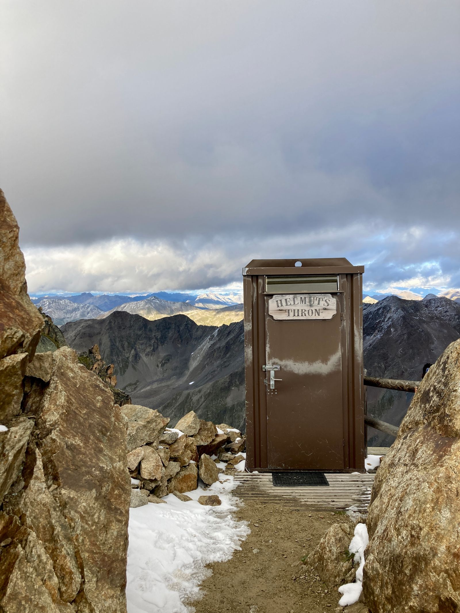 Puh! Die Nacht war wärmer als gedacht aber genauso unruhig wie erwartet. Unsere Body Battery lädt nur mäßig! Wir besuchen erstmal Helmuts Thron und dann gibt’s Frühstück mit Ausblick aufs Bernina Massiv - heute Morgen auch bei bester Sicht. Mit den Wirtsleuten besprechen wir nochmal unsere Pläne, schnorren uns ein paar Fanboy-Sticker mit dem Hüttenlogo und dann machen wir uns schon auf den Weg nach unten. Eigentlich hatten wir Flow gebucht, tatsächlich finden wir uns aber in diversen Blockfeldern wieder, die höchst anspruchsvoll zu befahren sind und jede Menge Körner kosten. Der müde Geist ist gefordert. Es geht isohypsig auf dem Steinbockweg das Tal raus bis wir dann am Ende wieder auf den Rücken aufsteigen, um auf der anderen Seite abzufahren. Hier haben wir dann eine richtig feine Variante erwischt - für uns am Rande der Machbarkeit und immer etwas drunter. Dafür gab‘s dann auch regelmäßig nette Worte der Begeisterung von den passierenden Wanderern. Nur Liebe für die Trail-Toleranz in der Schweiz. ❤️