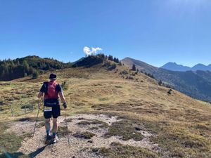 Am Gipfel des Gründeggs auf 2100 m überholte ich zum ersten Mal Hans, der mich die folgenden Kilometer bis ins Ziel begleiten sollte. Immer wieder wurden wir von Wanderern, den Leuten an den Labestationen, Bergrettlern oder Leuten, die gezielt auf die Läufer warteten, gefeiert - die Stimmung und das Ambiente war fantastisch. Der folgende Downhill zur Kleinarler Hütte bei K30 war ein besonderes Highlight. Erst abfallend am Grat entlang, dann steiler und technisch werdender war es die reinste Freude. Ich spürte zwar immer wieder, dass ich auf meinen verletzten Knöchel noch Acht geben muss, aber bisher gelang mir das ganz gut.